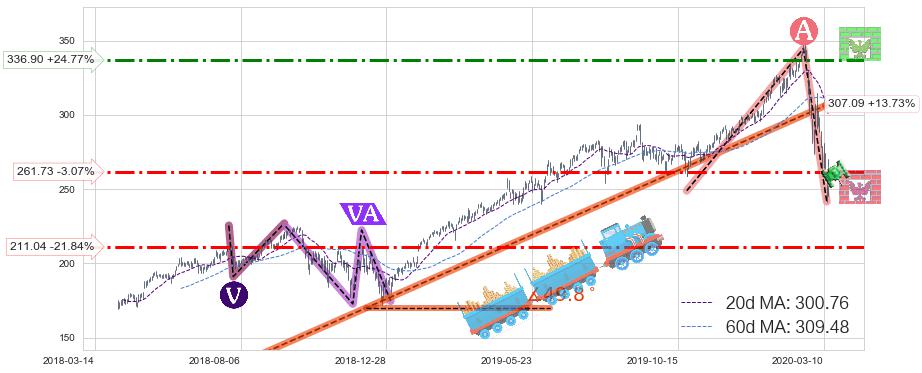 ✂️ 2018-04-06-2020-03-11上升趋势存在反转[风险],其原上升趋势的支撑位(307.09)已破位[强阻力信号],原上升趋势角度: 49.8˚