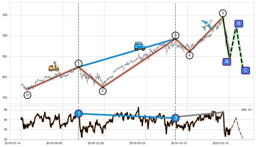 ➣ 第一, 三, 五浪上涨动能逐渐【增强变大】,趋势不断加固