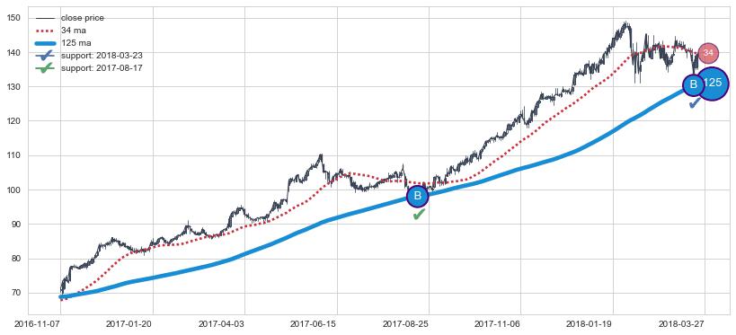 上涨趋势2016-11-07-2018-03-27,均线125确认关键支撑2处