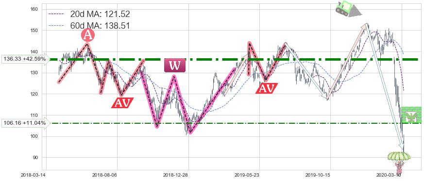 ♘ 阻力价格位136.33,可信任强度89.41%,距离最后交易2020-03-13形成的收盘价格95.61相差 +42.59%