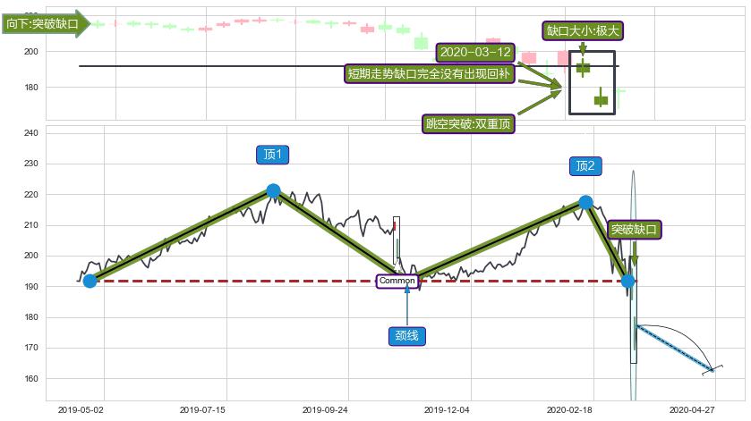 ➢ 2020-03-12形成:向下跳空【突破】缺口