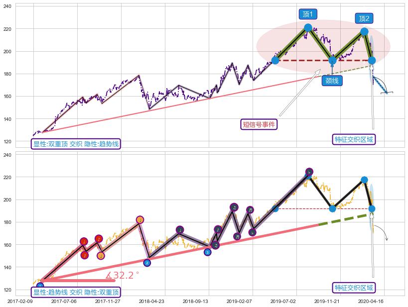 | 3 🅚:【死亡谷】卖出点 ➕ 📐:双重顶下行突破支撑位破位, 猜想持续下沉下跌,被突破的支撑位已变为阻力位 ☞ 看空信号 ⇥ 【均线】交织【图形】⇥ 综合量化分数: 38 | > |