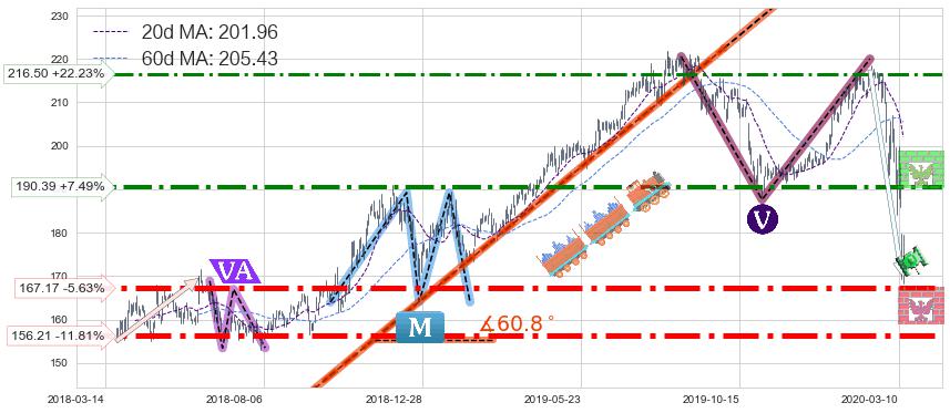 ➣ 市场信心【丧失】已在2020-03-09突破颈线提供的【支撑位】 191.78
