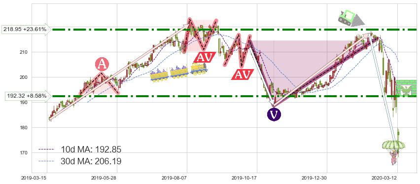 ♘ 阻力价格位192.32,可信任强度76.74%,距离最后交易2020-03-13形成的收盘价格177.13相差 +8.58%