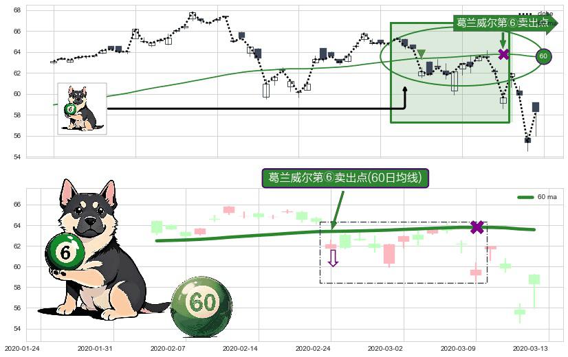 ⚀ 2020-02-24-日显现 葛兰威尔均线 60日均线 第⑥卖出点 走势反转见顶信号,后市看跌,卖出信号