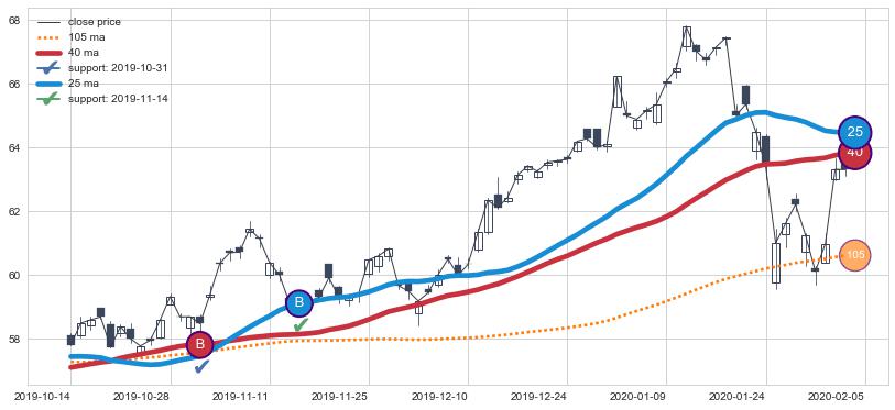 ⚃ 在破位点附近ma走势明显平稳迹象,稍后的走势中ma下垂迹象也出现,信号【可信度中等偏上】