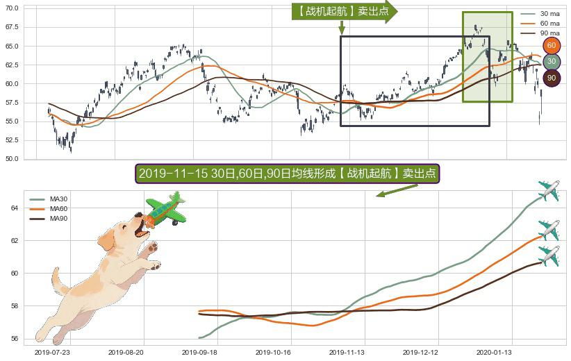 ⚀ 2019-09-11日-2020-01-24日显现 30日-60日-90日均线 【战机起航】卖出点 看空信号,后市看跌,卖出