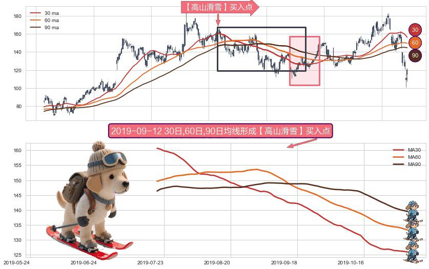 ⚀ 2019-07-19日-2019-11-04日显现 30日-60日-90日均线 【高山滑雪】买入点 看多信号,后市看涨,买入