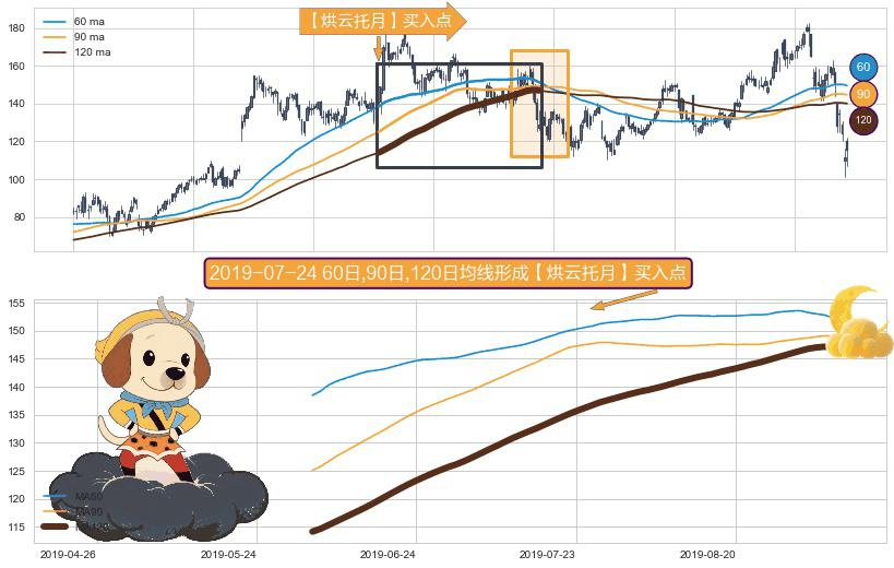 ⚀ 2019-06-05日-2019-09-10日显现 60日-90日-120日均线 【烘云托月】买入点 看多信号,后市看涨,买入