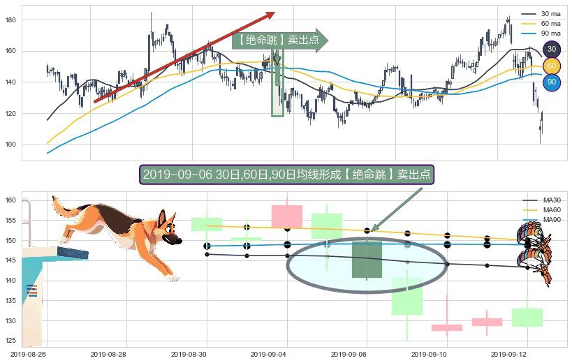 ⚀ 2019-09-06日显现 30日-60日-90日均线 【绝命跳】卖出点 看空信号,后市看跌,卖出