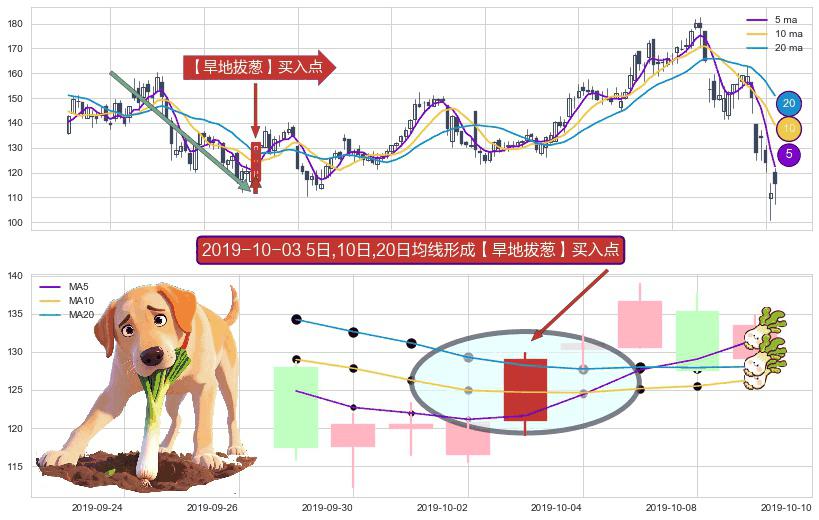 ⚀ 2019-10-03日显现 5日-10日-20日均线 【旱地拔葱】买入点 看多信号,后市看涨,买入