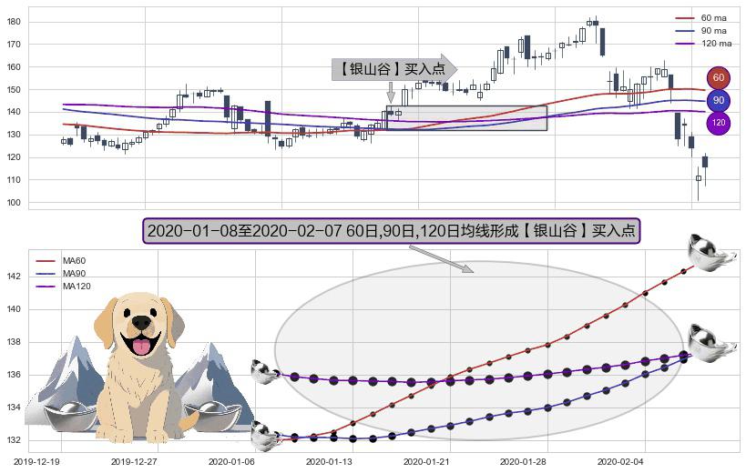 ⚀ 2020-01-09-日至2020-02-07-日显现 60日-90日-120日均线 【银山谷】买入点 看多信号,后市看涨,买入
