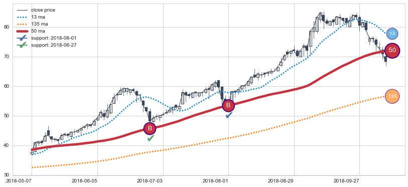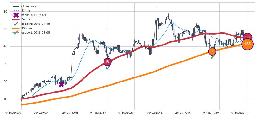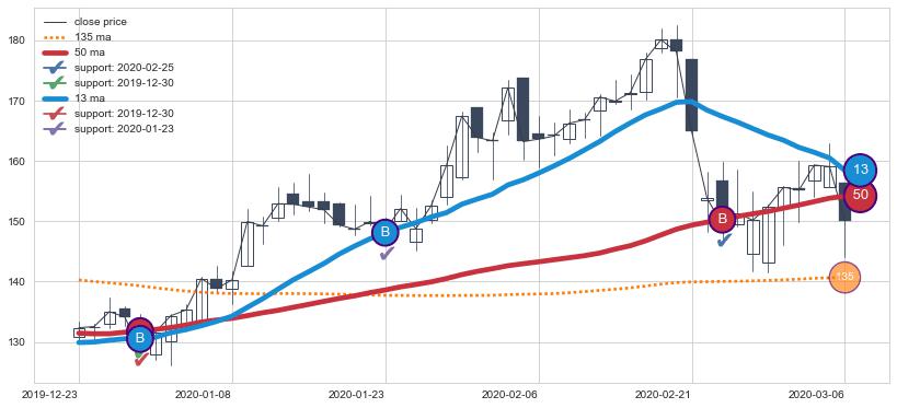 ⚃ 在破位点附近ma走势明显平稳迹象,稍后的走势中ma下垂迹象也出现,信号【可信度中等偏上】