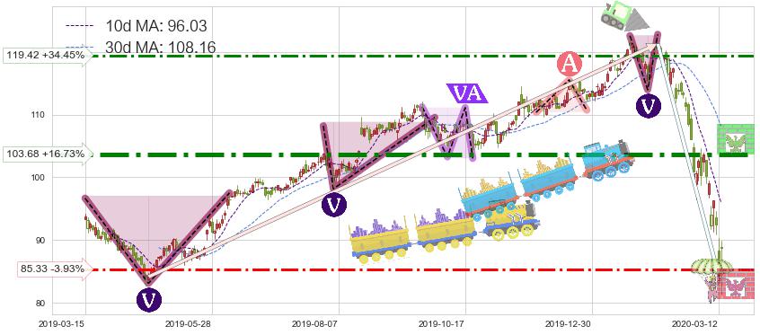 ♘ 阻力价格位103.68,可信任强度85.42%,距离最后交易2020-03-13形成的收盘价格88.82相差 +16.73%