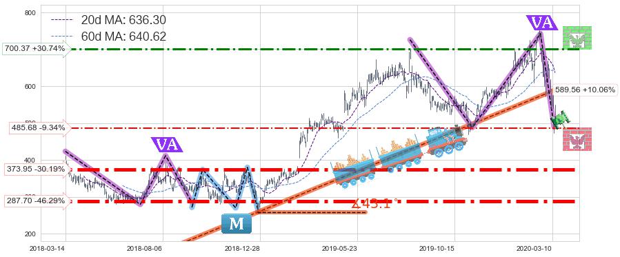 ♘ 阻力价格位700.37,可信任强度63.81%,距离最后交易2020-03-13形成的收盘价格535.69相差 +30.74%