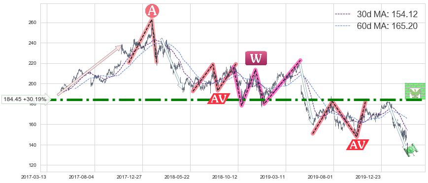 ♘ 阻力价格位184.45,可信任强度94.20%,距离最后交易2020-03-13形成的收盘价格141.68相差 +30.19%