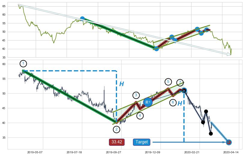 ➣ 最小中继整理跌幅→𝐇: 17.61 (𝐇旗杆的长度:旗杆起点→顶点)