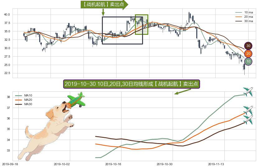 形态多维评估: ⚀ 2019-10-09日-2019-11-19日显现 10日-20日-30日均线 【战机起航】卖出点 看空信号,后市看跌,卖出