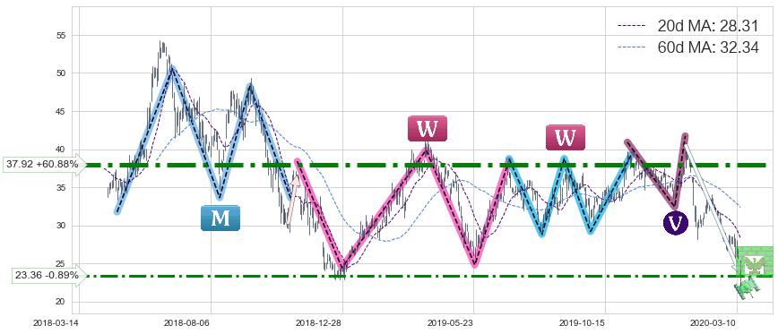 ♘ 阻力价格位37.92,可信任强度96.81%,距离最后交易2020-03-13形成的收盘价格23.57相差 +60.88%