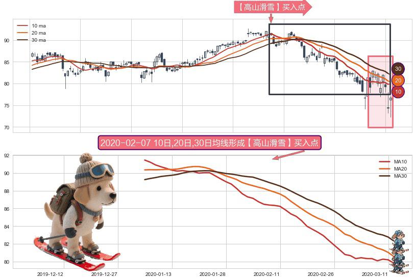 形态多维评估: ⚀ 2020-01-06日-2020-03-12日显现 10日-20日-30日均线 【高山滑雪】买入点 看多信号,后市看涨,买入