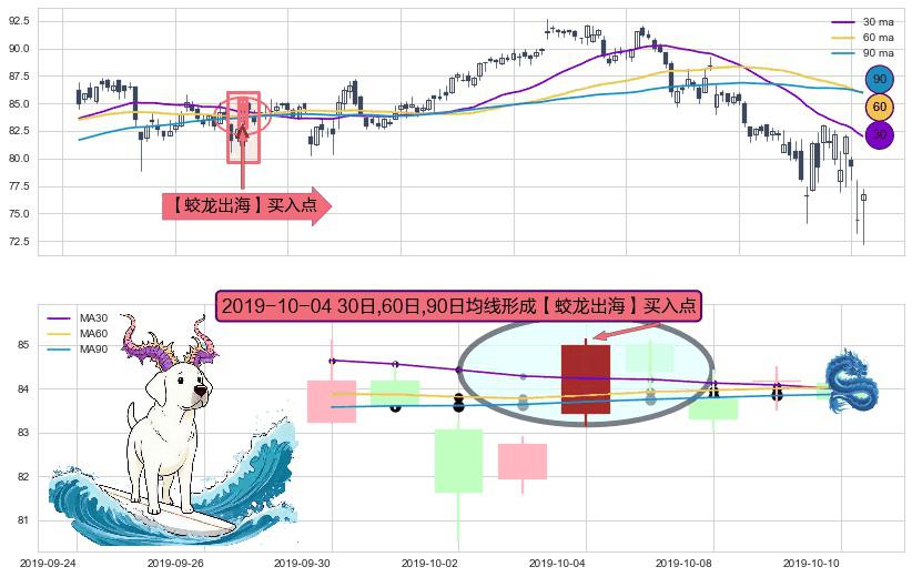 形态多维评估: ⚀ 2019-10-04日显现 30日-60日-90日均线 【蛟龙出海】买入点 看多信号,后市看涨,买入
