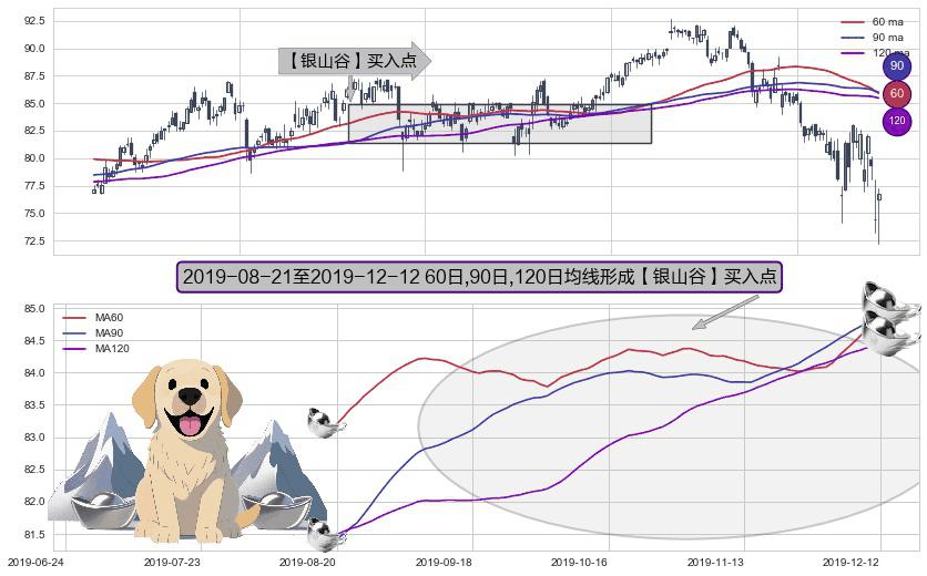 形态多维评估: ⚀ 2019-08-22-日至2019-12-12-日显现 60日-90日-120日均线 【银山谷】买入点 看多信号,后市看涨,买入