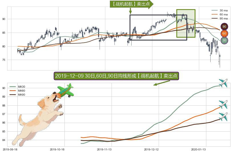 形态多维评估: ⚀ 2019-10-25日-2020-01-22日显现 30日-60日-90日均线 【战机起航】卖出点 看空信号,后市看跌,卖出
