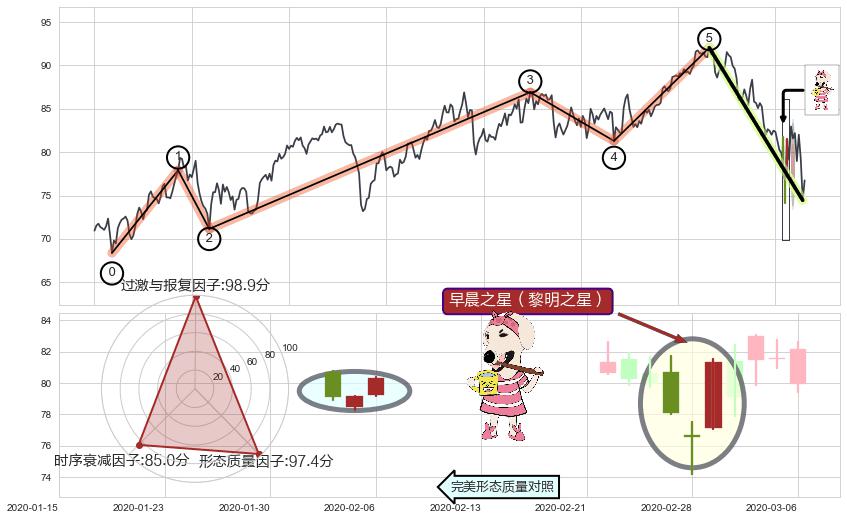 | 6 🅚:三只乌鸦 ➕ 🌊:波浪理论上涨5浪延续回调:猜想回调C点击穿破位,猜想持续蓄力回调abc下跌方向(大周期趋势均值回复后小周期持续趋势跟踪) ☞ 看空信号 ⇥ 【🅚线】交织【图形】⇥ 综合量化分数: 47 | > |