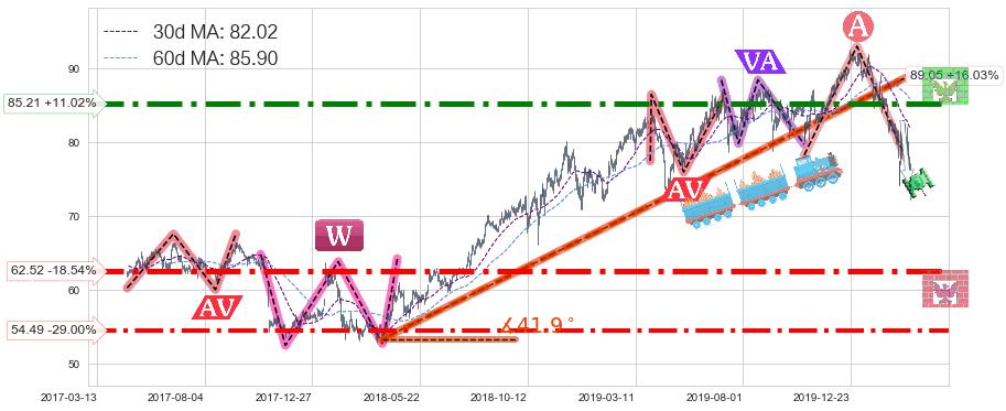 ♘ 阻力价格位85.21,可信任强度89.89%,距离最后交易2020-03-13形成的收盘价格76.75相差 +11.02%