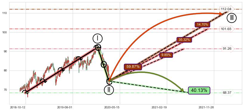 ➣ 循环浪继续向上【平均值】位置(2021-10-20, 101.65),匹配聚类样本比例59.00%, 可能性概率35.32%