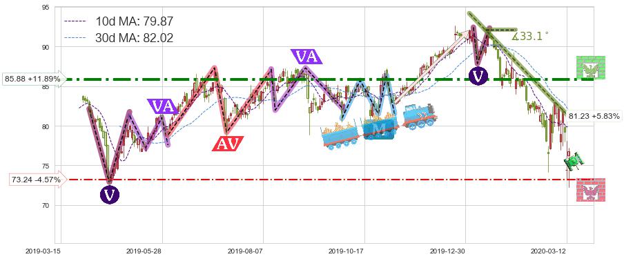 ➣ 预测:2020-04-15,【继续下探】稳定目前下跌趋势的前提下,预测价格:70.97