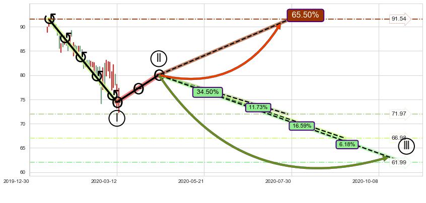 ➢ 高概率大级别循环下跌浪被破坏,反转向上(突破5浪起点)概率65.50%