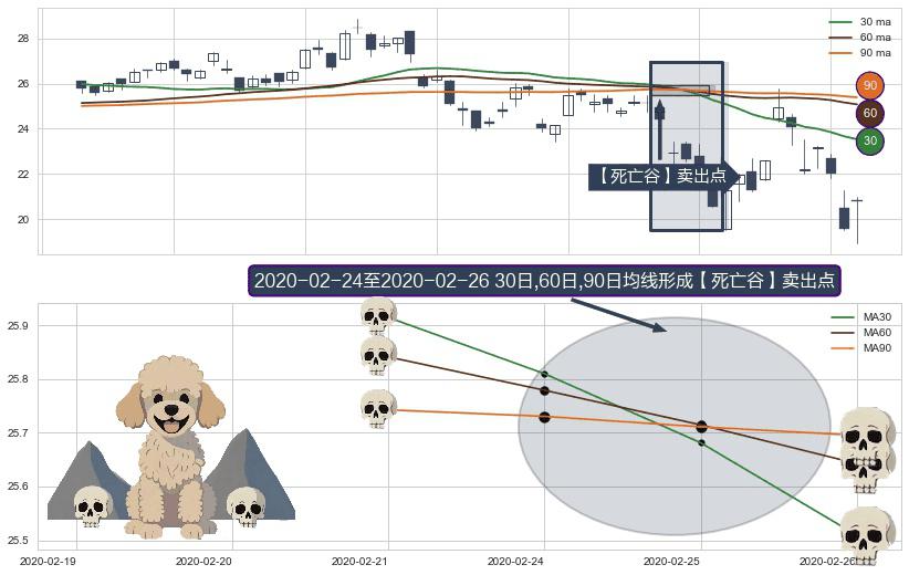 形态多维评估: ⚀ 2020-02-25-日至2020-02-26-日显现 30日-60日-90日均线 【死亡谷】卖出点 看空信号,后市看跌,卖出