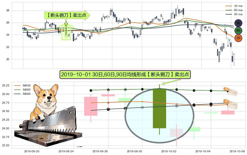 形态多维评估: ⚀ 2019-10-01日显现 30日-60日-90日均线 【断头铡刀】卖出点 看空信号,后市看跌,卖出