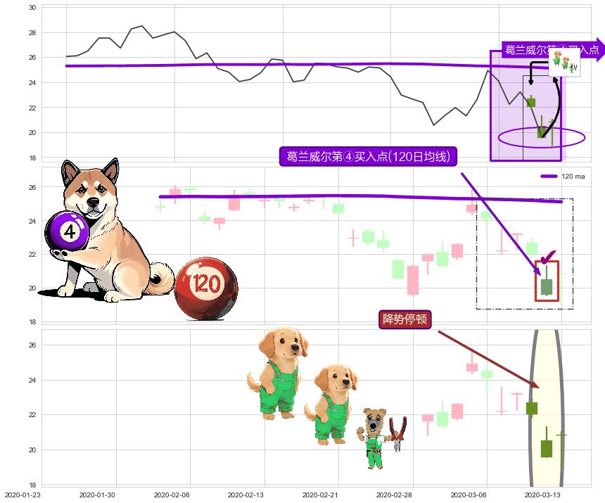 ➢ 收盘价(2020-03-12: 19.56 )→再次回踩→第一根k线高点(2020-03-04: 22.60 )