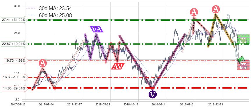 ♘ 支撑价格位19.75,可信任强度53.03%,距离最后交易2020-03-13形成的收盘价格20.78相差 -4.96%