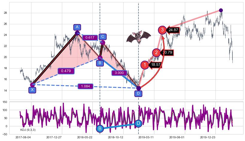 ➣ 已完成【蝙蝠】形态起点X: 2017-08-10, 终点D: 2018-12-24, 共346交易日