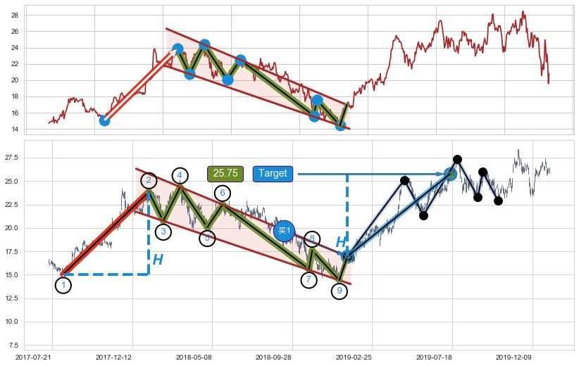 ➣ 最小中继整理涨幅→𝐇: 8.79 (𝐇旗杆的长度:旗杆起点→顶点)
