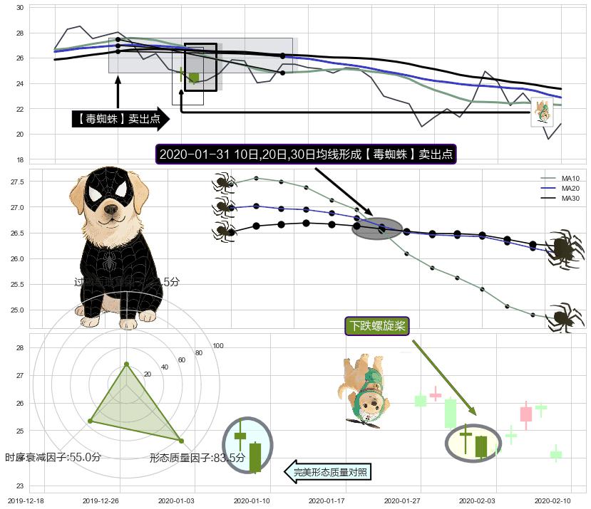 | 14 🅚:【毒蜘蛛】卖出点 ➕ ☯️:缠论买卖点上升缠:临近3卖-猜想击穿破位3卖后延续下跌趋势(大周期趋势均值回复后小周期持续趋势跟踪) ☞ 看空信号 ⇥ 【均线】交织【图形】⇥ 综合量化分数: 37 | > |