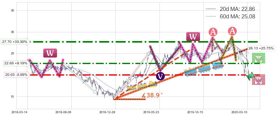 ➣ 【已确认突破】最后价格:20.78与最小【反转】第一目标价格→(2020-04-08: 17.41 )相较: 下跌空间【中等】