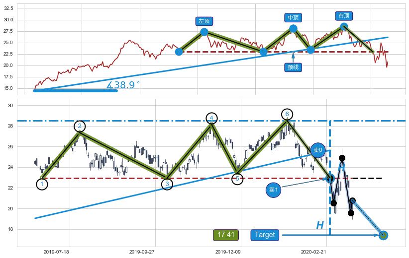 ➢ 高点影线(2020-02-25: 23.45 )→回踩→第二根k线高点(2020-02-24: 23.42 )