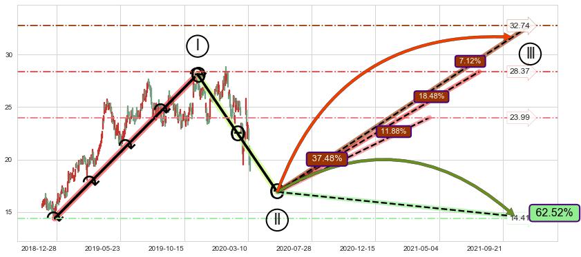 ➣ c.1: 当前c浪回调位置(2020-03-12, 19.56),仍然有回调空间