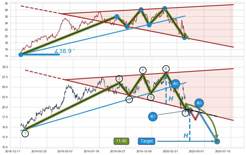 ➢ 最小中继整理涨幅→𝐇: 9.81 (𝐇楔型旗杆的长度:楔型起点→顶点)