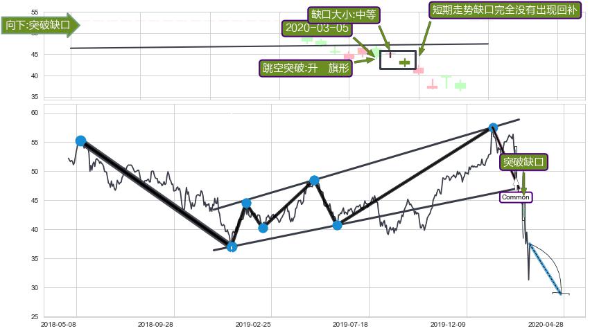 ➢ 2020-03-05形成:向下跳空【突破】缺口