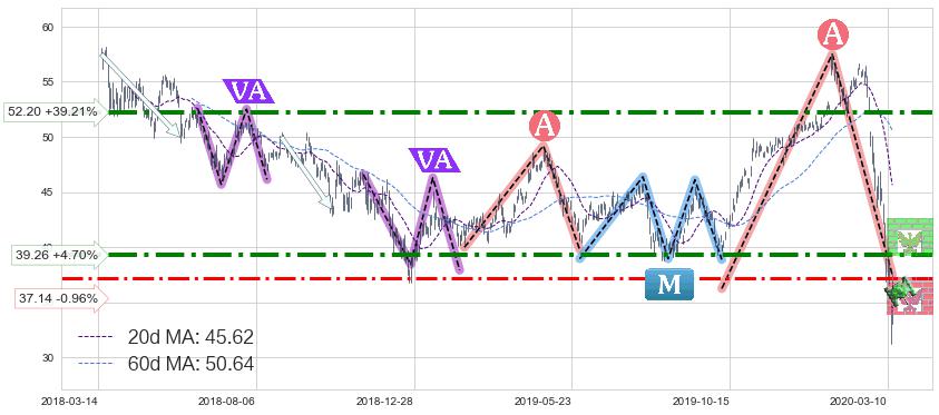 ♘ 阻力价格位39.26,可信任强度74.47%,距离最后交易2020-03-13形成的收盘价格37.50相差 +4.70%