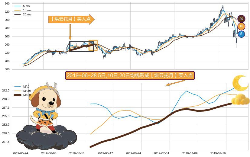 ⚀ 2019-06-11日-2019-07-18日显现 5日-10日-20日均线 【烘云托月】买入点 看多信号,后市看涨,买入