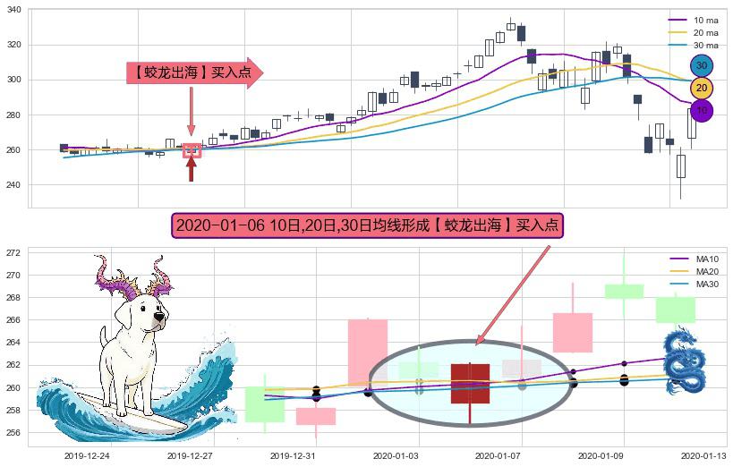 ⚀ 2020-01-06日显现 10日-20日-30日均线 【蛟龙出海】买入点 看多信号,后市看涨,买入