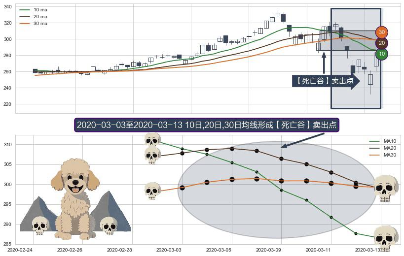 ⚀ 2020-03-04-日至2020-03-13-日显现 10日-20日-30日均线 【死亡谷】卖出点 看空信号,后市看跌,卖出