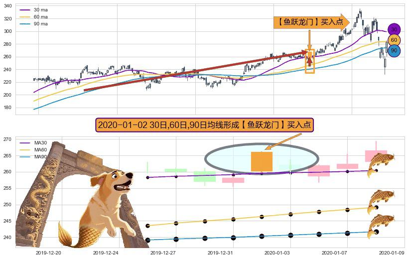⚀ 2020-01-02日显现 30日-60日-90日均线 【鱼跃龙门】买入点 看多信号,后市看涨,买入