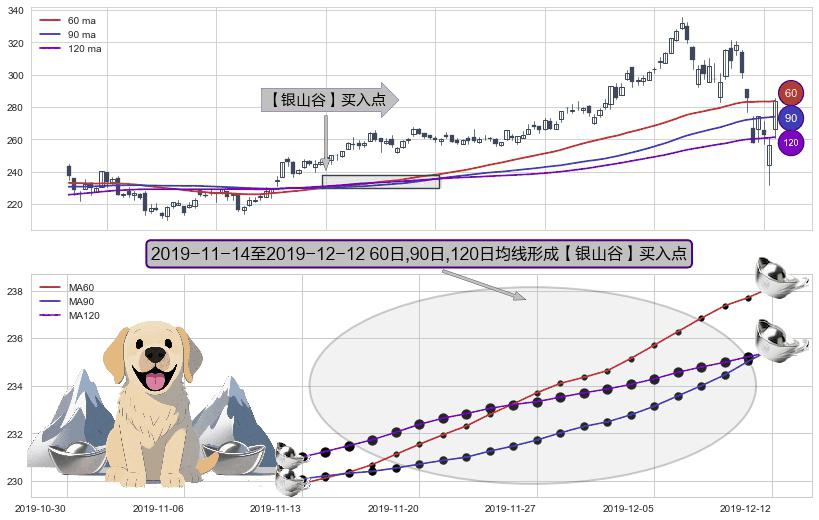 ⚀ 2019-11-15-日至2019-12-12-日显现 60日-90日-120日均线 【银山谷】买入点 看多信号,后市看涨,买入